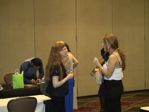 Finally, that evening, JossiLynn and I attended the Kick-Off Party, where we had a very enjoyable time. While neither of us were much for dancing that night, we did get to chat it up with three of our four handsome RNCasanovas: Paul Gunn, Michael Newkirk, and Zack Williams. We also discovered, quite by accident, that apparently leaving me alone at a table was a good way to attract male attention.;-) Again, this is something that never happens to me, so I was incredibly flattered. It made JossiLynn immensely happy too, since she's still looking for Mr. Right.:-) Anyway, I have no idea how I made it through the day on so little sleep (I must have been riding an endorphin high), but it was so totally worth it.